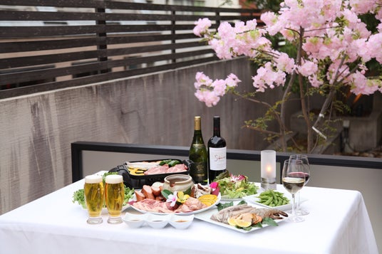 都会の真ん中でアウトドア気分を満喫できる大人気のBBQプラン。桜の下で春風を感じながら味わうBBQは格別です。今年は3月末まで限定でスパークリングワインを飲み放題でお楽しみいただけます。