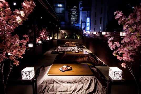 春の訪れが待ち遠しいこの季節、「バネバグース赤坂見附店」のテラスエリアに毎年好評いただいている『桜ガーデンテラス』が登場。華やかな雰囲気のテラス席で、一足早くお花見気分を満喫いただけます。気温の変動が激しいこの時期は、暖かい日はBBQ、肌寒い日はこたつで鍋を楽しむなど、天候に合わせた使い方も可能です。