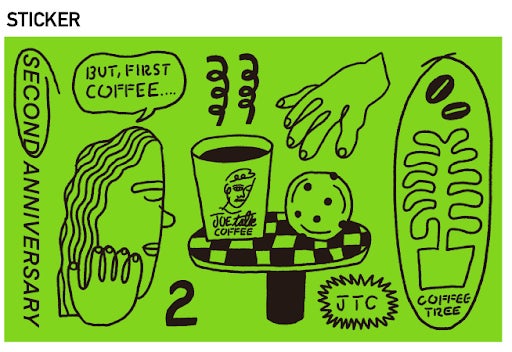 3月19日(火)から2周年記念商品の先行予約を開始いたします。先行予約でご購入いただいた方には、JOE TALK COFFEEのロゴをデザインしたイラストレーターnorahi氏がデザインした2周年記念ステッカーをプレゼントいたします。