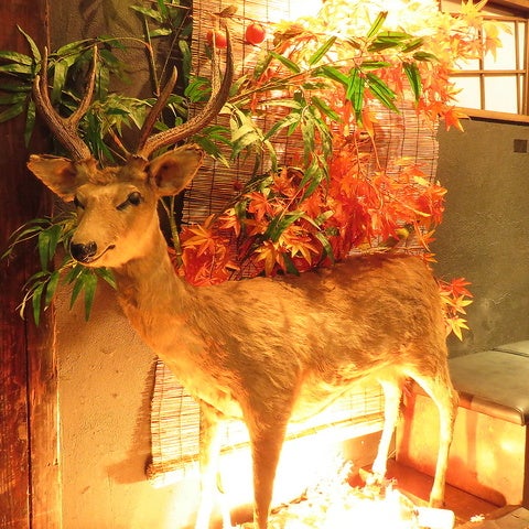 鹿の剥製がお出迎え♪♪山小屋をイメージした店内は隠れ家感満載!席の結合等も出来ますので、大人数でのご来店にも対応いたします。