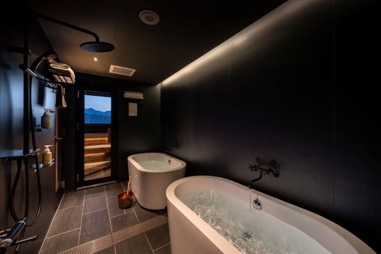 全客室にプライベートサウナ・温泉浴・水風呂・ととのいスペース付き