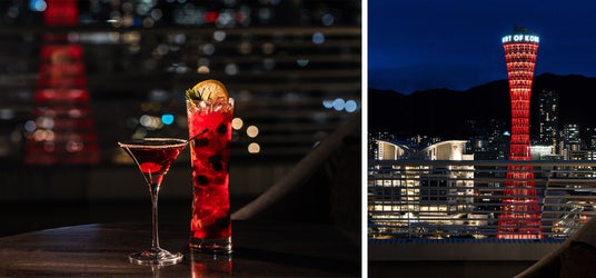 ホテル最上階から神戸の街の夜景を望むバー「VIEW BAR」にて、神戸ポートタワーをイメージしたカクテル2種を販売いたします。