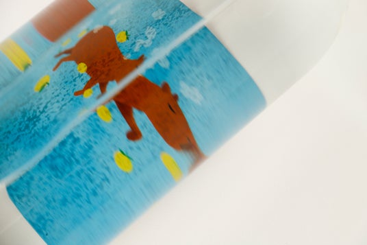 ボトルを覗くと、温泉を優雅に泳ぐカピバラの姿がボトルの中に浮かびます。お酒を飲み進めて瓶内のお酒の量が減ってくると、カピバラは次第に焼酎の温泉にぷかぷかと浸かっているように見えくる姿をお楽しみいただけます。裏ラベルにはうっとりと目を閉じながら、温泉を満喫するカピバラたちが描かれています。