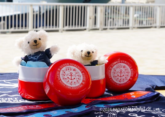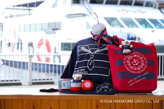 可愛いマカロン缶に入ったリボンスカーフ、トートバッグ、ロングTシャツ、そしてマリンベアのキーホルダー。いずれもSKO結成20周年記念ロゴを施した数量限定商品となっています!