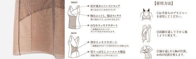 汗をかいても快適な素材で、万が一見えてしまっても恥ずかしくないこだわりのベージュカラーのインナーとスタイルケアアイテムで、楽しく毎日のセルフケアをお楽しみください。