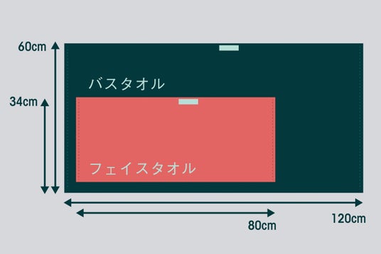 サイズ:フェイスタオル:80cm×34cm、バスタオル:120cm×60cm