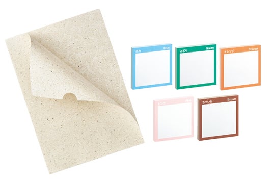 ↑写真は左から「紙製ホルダー 茶殻紙タイプ」(キングジム)、「みんなのふせん 強粘着」(プラス)。