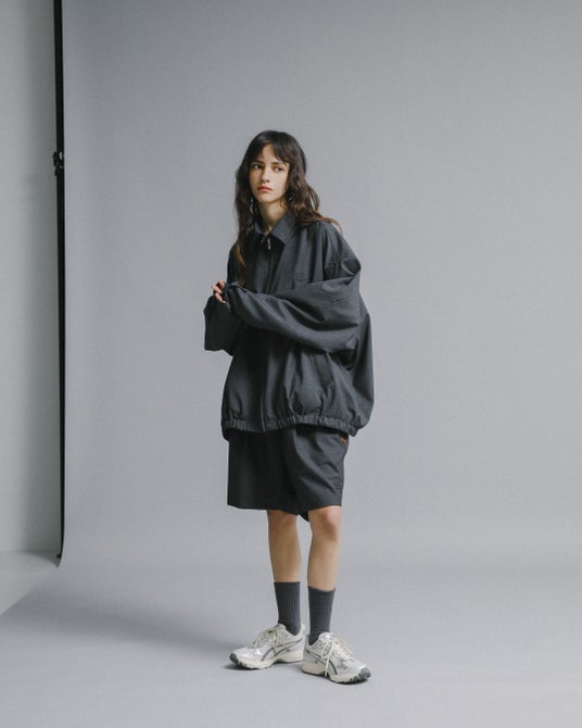 着丈短めでたっぷりと身幅をとったシンプルなブルゾン。