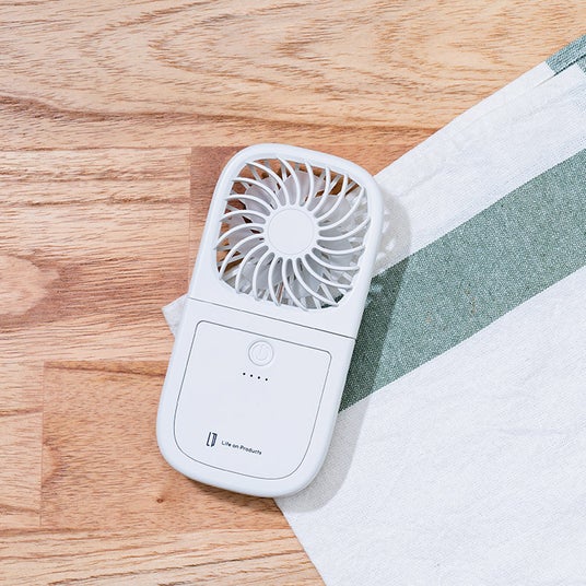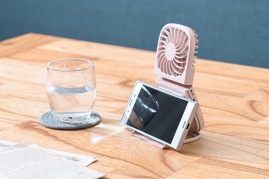 モバイルバッテリー機能付でマルチに活躍するハンズフリーファン。スマホを置きながら涼めるなど、便利な機能を1台に搭載。