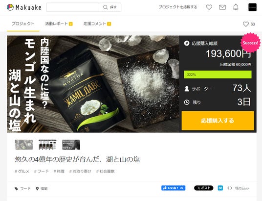 是非この機会に応援いただき、いち早く、湖と山が育む「モンゴルの塩」の魅力をご堪能下さい。