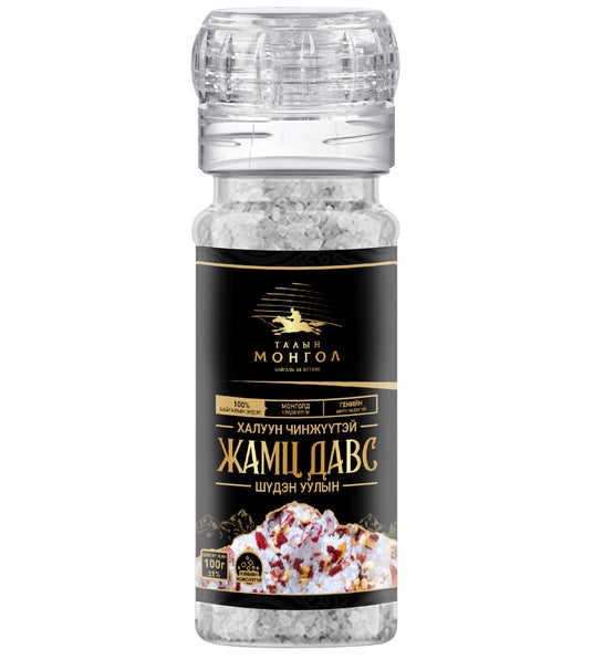 海のないモンゴルの湖や山で、地殻変動によって何億年もかけてゆっくりと生成される塩は、事前アンケートで144名中112名が肉料理に、70名が食卓塩に適していると回答するなど、肉料理の下味にも仕上げの食卓塩にも最適です。