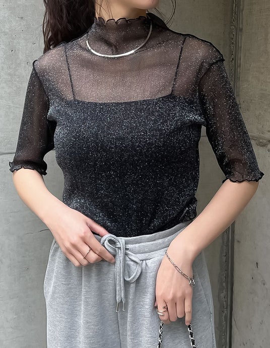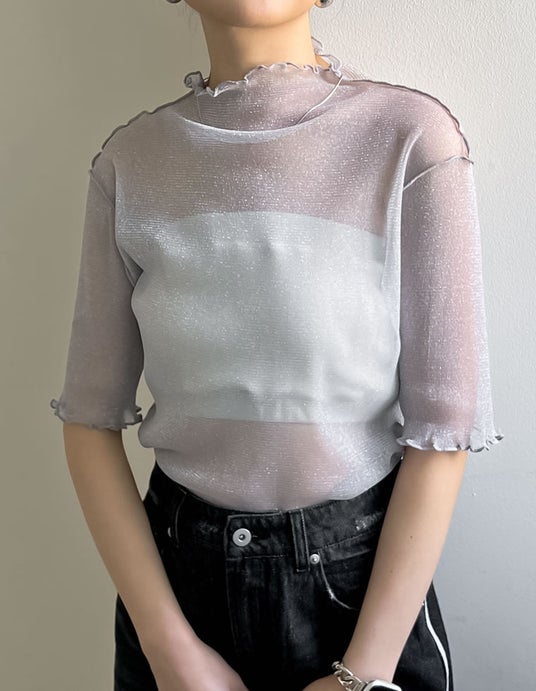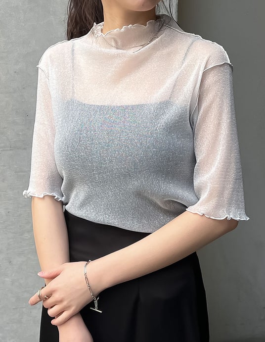 商品名:ラメチュールボトルネック半袖プルオーバー
