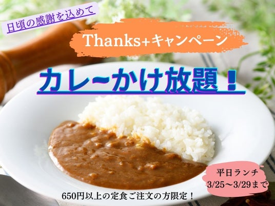 この度、以前にご好評をいただいた平日ランチ特別企画!期間限定の『サンクスプラスキャンペーン』を開催いたします。