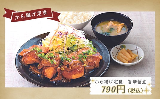 から揚げ専門店『山武源(さんぶげん)』からご提供する『から揚げ定食』は、特製漬けダレに漬け込んで丁寧に衣漬けしたサクッとジューシーな自慢の『から揚げ』を思う存分満喫していただけます。