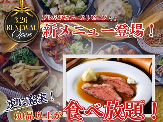 食べ放題のテーマパーク、 ニラックス株式会社(本社:東京都武蔵野市、 代表取締役:崎田 晴義)が運営する『ザ ブッフェ 富山大和店』は、2024年3月26日(火)よりメニューを一新いたします。