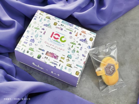 西宮市100周年のロゴと阪急百貨店の復刻版包装紙デザインの限定パッケージ(5個入)