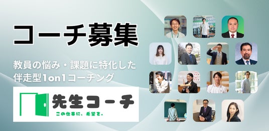 「学級経営、授業、人間関係、働き方・キャリア」など、教員がよく抱える悩みを解決するために、コーチングサービス『先生コーチ』に新たなコーチを募集しています。