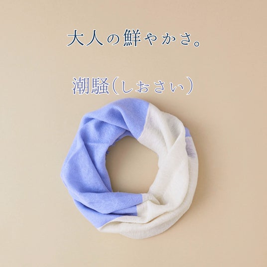 昭和から動き続けているアナログ織り機によって折り上げられたスヌードは驚きの柔らかさと温かさを提供します。