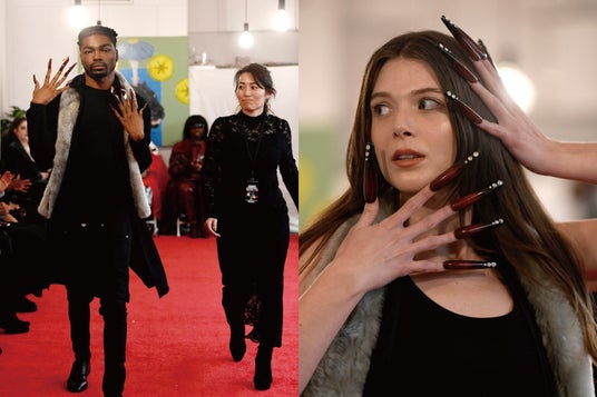 [内容]高山の伝統的な土蔵を生かした空間にランウェイを設け、10人のモデルが様々なコンセプト・デザインの飛騨春慶ネイルを披露