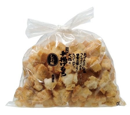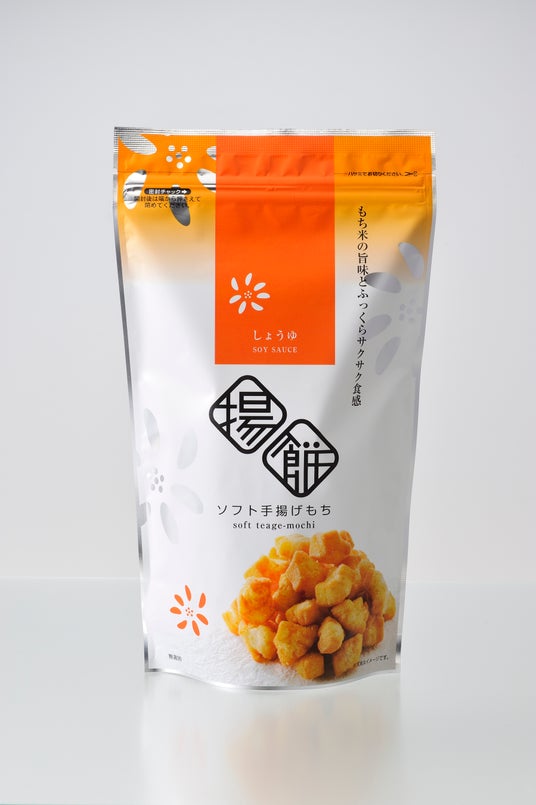 復刻版「手揚げもちしょうゆ味」は、おばあちゃんがつくってくれた田舎の味。そのなつかしい揚げもちを再現しました。