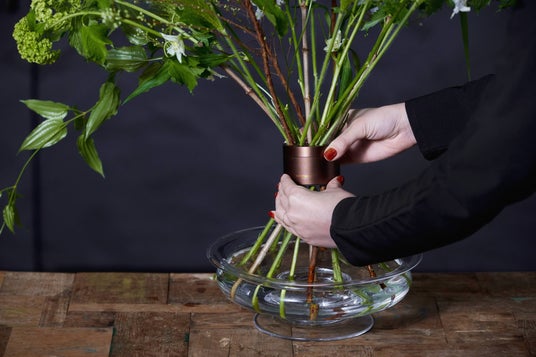 「Hanataba – Bouquet twister」は、誰でも簡単に花束を作ることのできるクリエイティブツールです。プロのフラワーアーティストがブーケを作る際の技術“ダッチスパイラル”に基づく構造により、ツイスターの穴に花を通して最後にツイストするだけで美しいブーケが完成します。ブーケはツイスターで固定されるので、花器に入れる、そのまま置く、浅い皿に置くなど、様々なアレンジが可能です。ステンレス製のため錆びにくく、何度も繰り返しお使いいただけます。