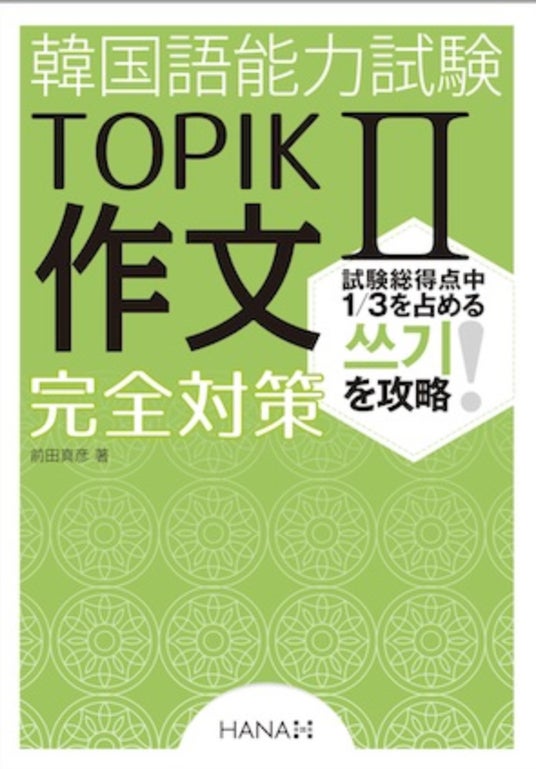 「本書は、TOPIK IIの作文領域に的を絞った日本初の対策書で、中・上級学習指導で高い評価を得ている韓国語講師、前田真彦先生がどんな書き取り課題にも対応できる論理展開と作文のテクニックを伝授します。初めてTOPIK IIを受験する人も、最上級の6級合格を目指す人も、この本を読み、練習することで、苦手な作文領域が得点源へと変わります!」(韓国語のHANA公式サイト本書説明より)