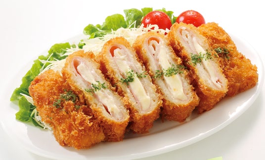 とろーりとしたチーズソースと、サクッとした衣の食感が特長の商品です。チーズソースとハム・鶏ムネ肉の相性も抜群。