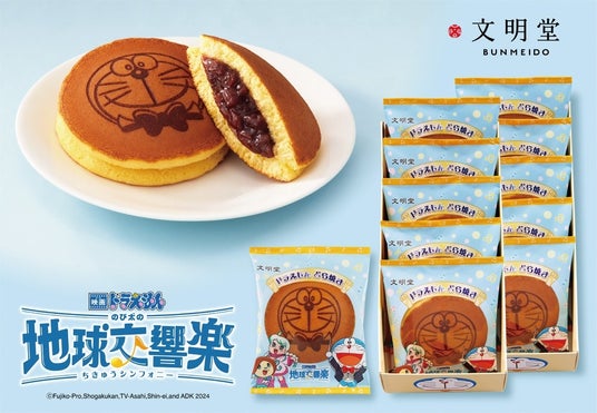 「映画ドラえもん のび太の地球交響楽」の期間限定焼印が入った、くちどけのよいやわらかな生地、すっきりした甘さの北海道産小豆のどら焼きです。