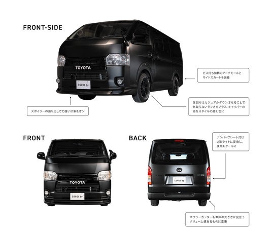トヨタ・コニック・プロ株式会社(本社:東京都千代田区、代表取締役社長:山下義行)が運営する、中古車のスタイルをアップデートし販売するブランド「CORDE by<コーデバイ>」は、昨年のジャパン・モビリティ・ショー2023で発表したマットブラック仕様のカスタムハイエース “HIACE THE CREWVAN<ハイエース・ザ・クルーバン>”を、2024年3月28日(木)より、2024年年間上限20台で販売を開始いたします。