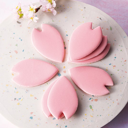 サクッと広がる和三盆糖の甘み。ピンクの花びらが愛らしく。