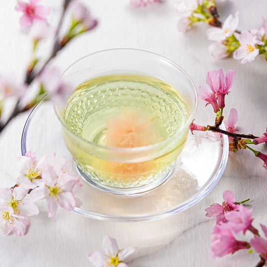 煎茶ベースの玄米茶「東」と塩漬けの桜花のセットした春の限定品です。お茶の中で花開く桜が、ティータイムに華やぎを添えます。お祝いやご挨拶などにおすすめです。
