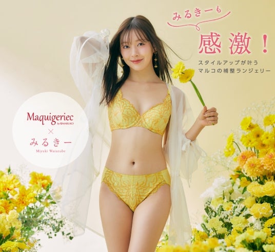 MRKホールディングス株式会社(代表取締役 :塩田 徹、本社 :大阪市北区 )のグループ会社である体型補整用婦人下着を販売するマルコ株式会社(代 表取締 役 :岩本 眞 二 、 本 社 :大阪市 北区 )は、アイドルグループNMB48の元メンバーで、現在はファッションモデルとしても活躍する「みるきー」こと渡辺美優紀さんを当社の補整ランジェリー「マキジェリーク」のイメージモデルとして起用しました。渡辺美優紀さんのムービーとビジュアルは、4 月1 日(月)より、下記の特設ページにて公開予定です。