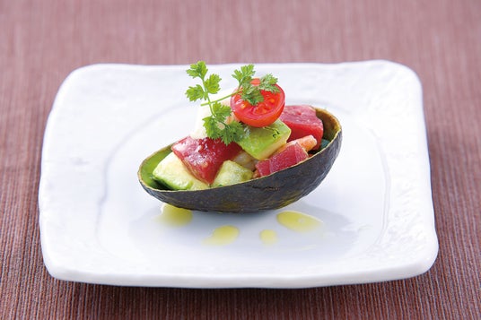 一品料理も、アボカドをとことん味わうオリジナルメニューを揃えました。くちどけの良さを感じられるダイスカットのアボカドに、自慢の本鮪の赤身や海老、キュウリなどを合わせた「アボカドと魚介のマリネ風」や、火を通したアボカドのほくほく感が新しい「アボカド海鮮かき揚げ」・「アボカドサーモングラタン」、カットしたアボカドに大胆にバニラアイスを盛り付けた「アボカドカップアイス(メープル添え)」など、アボカドざんまいなお食事をお楽しみいただけます。