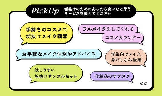 ユーザーが垢抜けのために重要視しているメイクポイントが分かりましたが、次に「垢抜けのためにコスメブランドや美容業界にあったらいいなと思うサービスや要望があれば教えてください」という質問から、ユーザーが企業やブランドに対して求めているものを調査してみました。