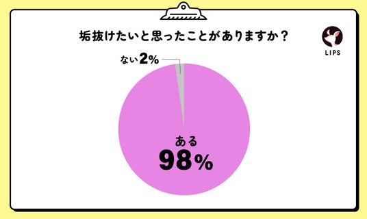 約1800名のLIPSユーザーの回答によると、なんと驚きの98%が「垢抜けたいと思ったことがある」と回答。多くの割合で垢抜け願望を抱いたことがあるようです。