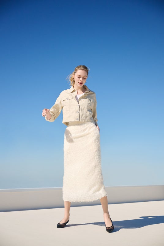 キチンと感の中に、女性らしい柔らかさと艶やかさが感じられる素材とデザイン。