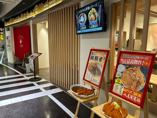 「ぎおん亭」は”おなかいっぱいの幸せを”をモットーに、博多バスターミナル8階にある行列の絶えないお店です。ボリューム満点!がっつり食べられる定食一番人気「とんてき」と「とんかつ」が名物です。お肉は筋切りをしっかりする事で柔らかく仕上げています。濃厚な甘ダレにたっぷり絡んだお肉にニンニク2つを乗せたスタミナ満点の一品です。