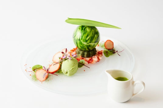 苺×抹茶×ショコラを楽しむ、見た目も華やかな球体型デザート