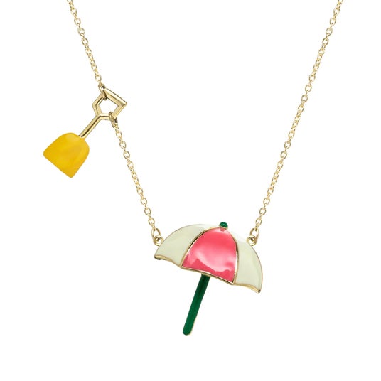 今回新しく仲間入りしたのは、ビーチパラソルとシャベルの組み合わせが茶目っ気たっぷりなネックレスです。子供たちがビーチで思いっきり遊べるように、という思いが詰まっています。