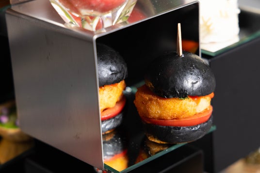 ・帆立貝のクロケットとロメスコソースの暗黒バーガー