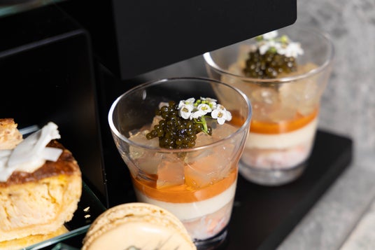 トマトの氷結仕立て 蟹と新玉葱のムースリーヌ キャビアを添えて