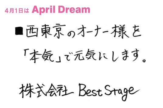 Best Stageは、オーナー様の不動産投資・不動産事業の成功を「本気」で応援します。このプレスリリースは、April Dreamに共感したBest Stageが今年、掲げている夢を配信します。