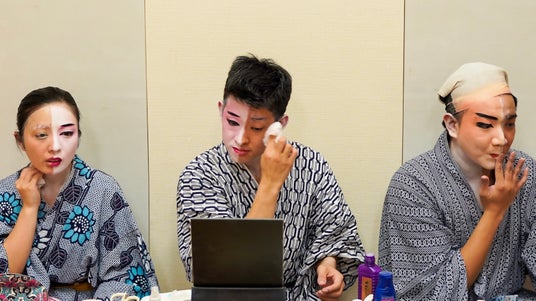 琉球舞踊の化粧の様子(リュウカツチュウ・国立劇場おきなわYouTubeより)
