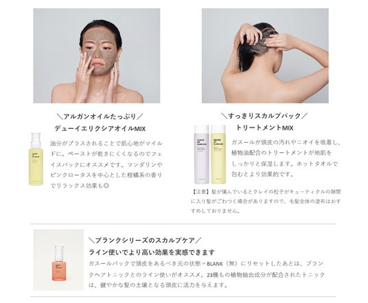 定期的にご使用いただくことで、キメの整った明るく透き通る素肌へ導きます。トラブルを抱えがちな頭皮も、ガスールでケアすることで健康な毛髪を育む土台へとリセットします。