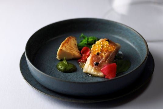 4皿目に提供される「桜鱒【北海道または青森または宮崎】六白黒豚【鹿児島】」にて、Smoltのサクラマス(桜鱒)とつきみいくらが使用されます。桜鱒は、入荷状況によって上記産地よりいずれかの提供、つきみいくらに関してすべてのお客様に提供される予定です。