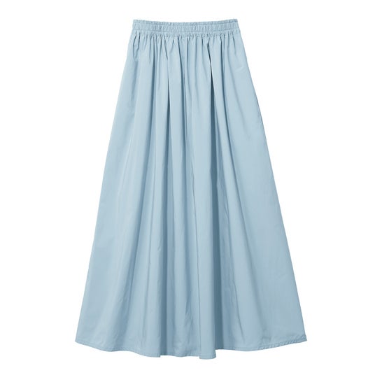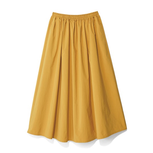ミモレ丈のスカートもご用意しました。東レ株式会社のアーティローザ(R)を使用し、はっ水加工を施しました。微光沢を湛えたパウダリーな質感とオールシーズン楽しめる使い勝手のよさが魅力です。