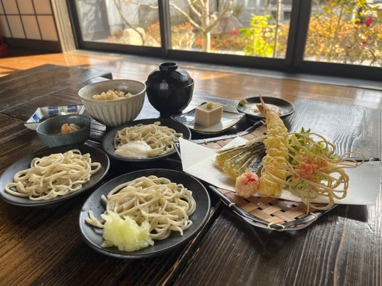 脂がのり、弾力のある肉質で今が特に美味しいとされる鯛をしょう油麹のたれに絡ませて頂く十割蕎麦は絶品!蕎麦の実を使用した蕎麦ぞうすいや旬の野菜を使用したちょこっと天ぷらも付いた大満足の御膳です。