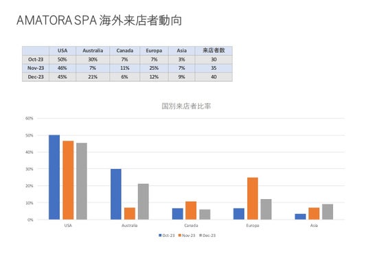AMATORA SPAでは、日本人の黒髪の為に最良のヘアケアを提供することに焦点を当てた株式会社Amatoraの各ブランドをメインに使用した施術を提供しており、その洗うごとに本来の髪の美しさを引き出し、さらにコンディションを高めるメニューが国内外のお客様に大変好評を頂いております。特に海外のお客様は口コミを通じて、わずか1年で全体の20%以上になるまでとなリました。