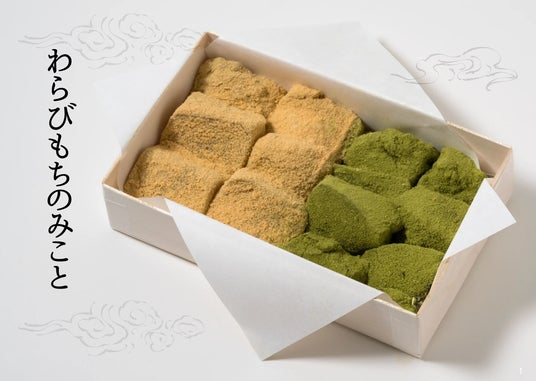 わらびの根全体から5~6%しか採取できない希少な本わらび粉を使用し、独自の配合で練り上げます。もちっとした存在感を残しつつ、とろりと口の中でほどけるわらび餅は、そのまま、きな粉や緑茶粉をかけて食べるのはもちろん、ドリンクとの相性は抜群です。