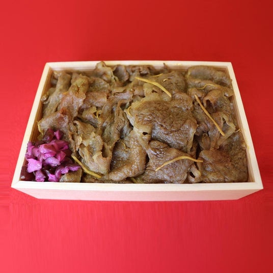 上しぐれ弁当 2,160 円(1 折)京都・寺町三条にて明治6年創業。150年余り受け継がれてきた秘伝の割下で熟成をした⿊⽑和牛と生姜を炊いた具がたっぷりのった贅沢弁当を、ぜひご堪能ください。